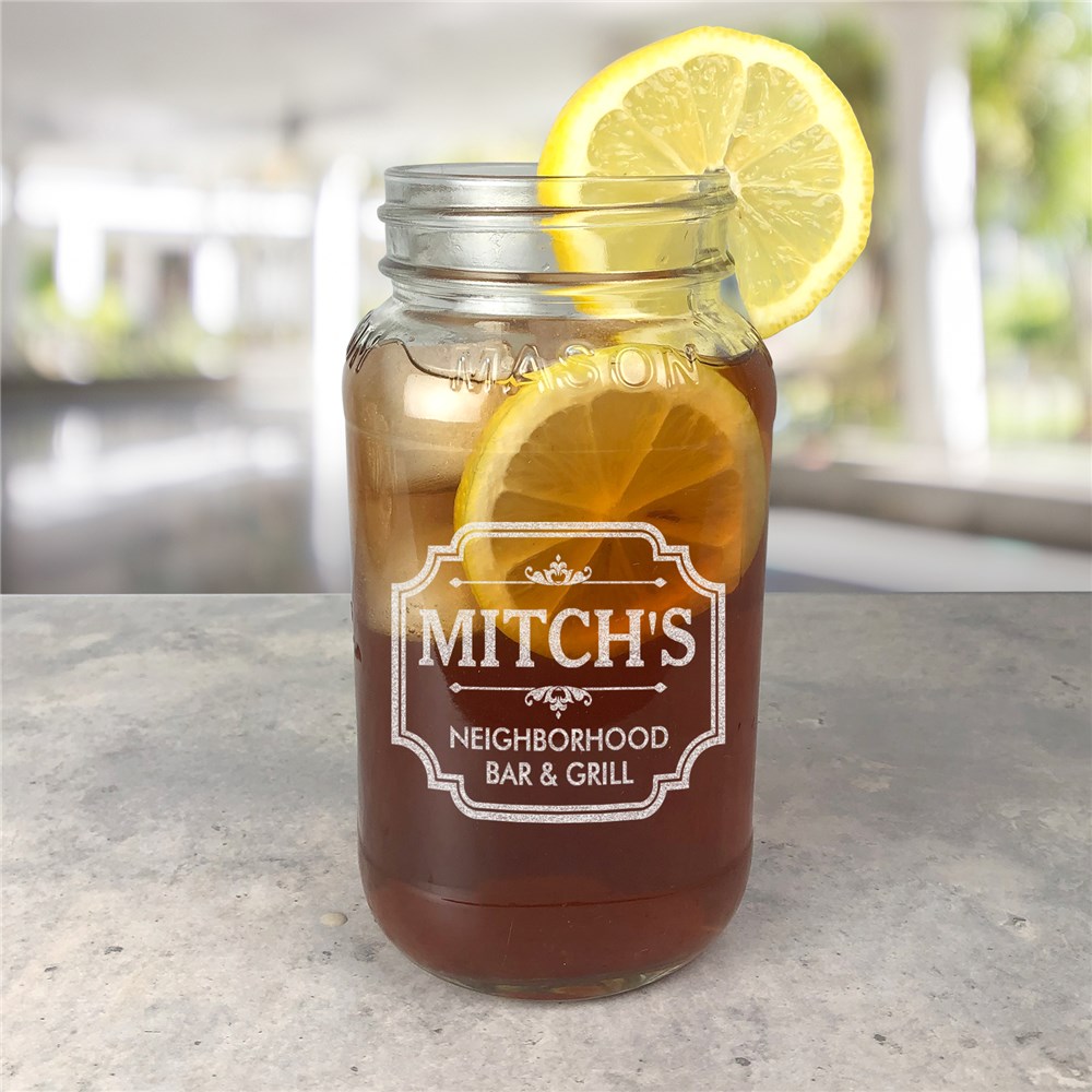 Engraved Neighborhood Bar and Grill Large Mason Jar