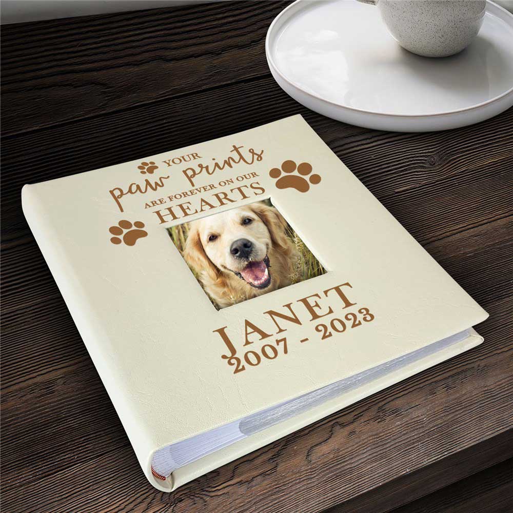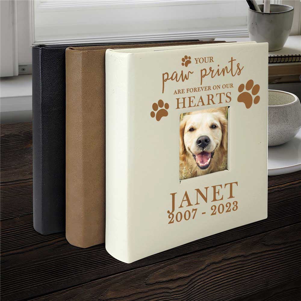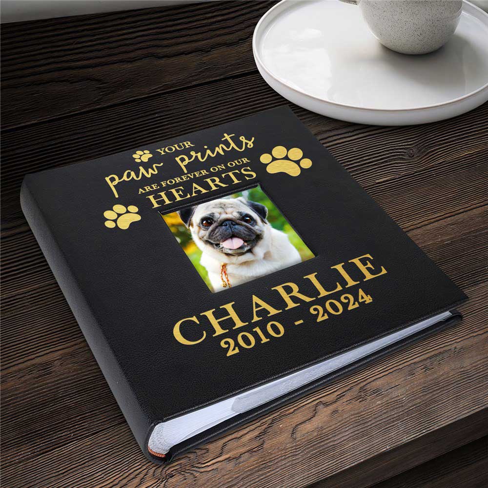 This Engraved Paw Prints On My Heart Leatherette Photo Album is the perfect way to always remember your furry friend.