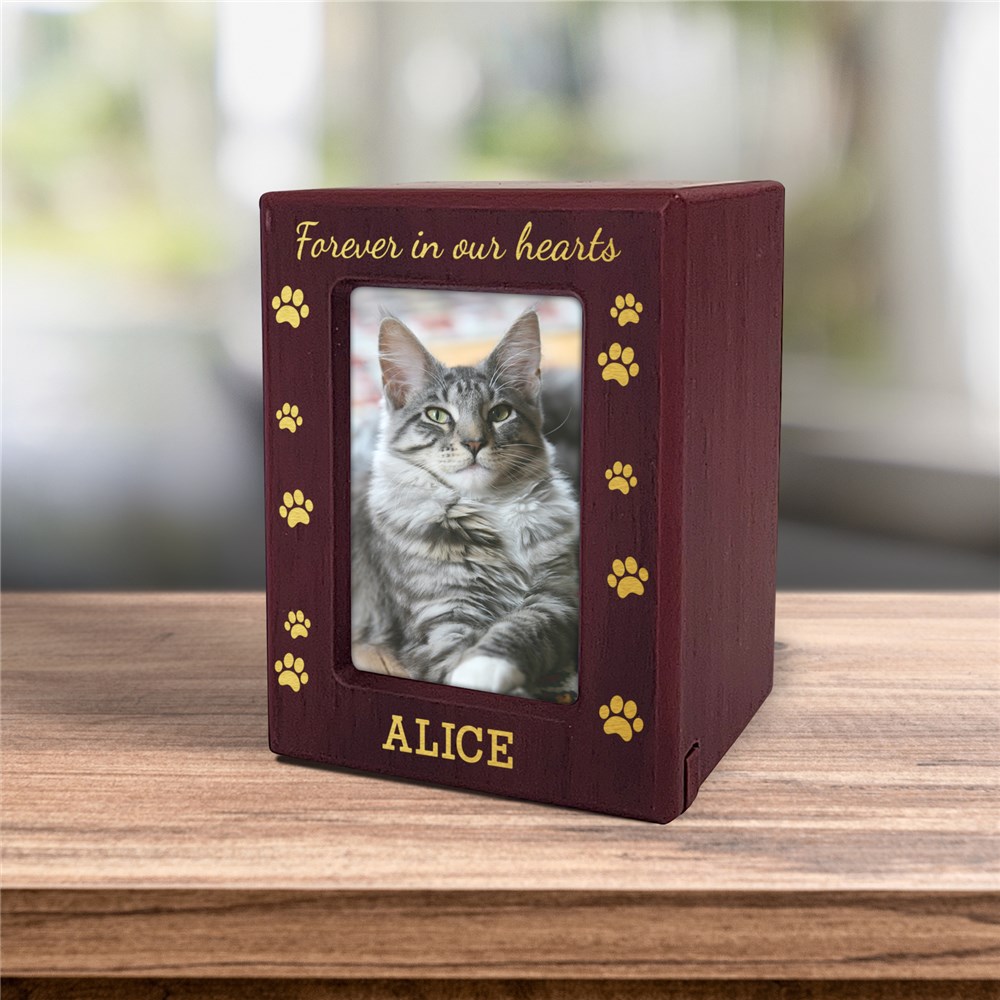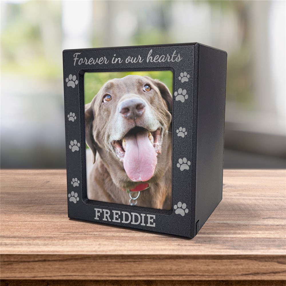 It's hard to say goodbye to our furry friends; keep their memory alive with our Personalized Paw Prints Pet Photo Urn.