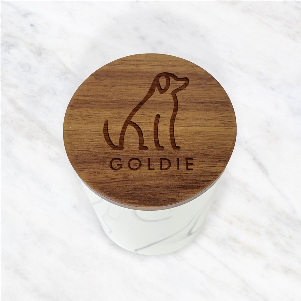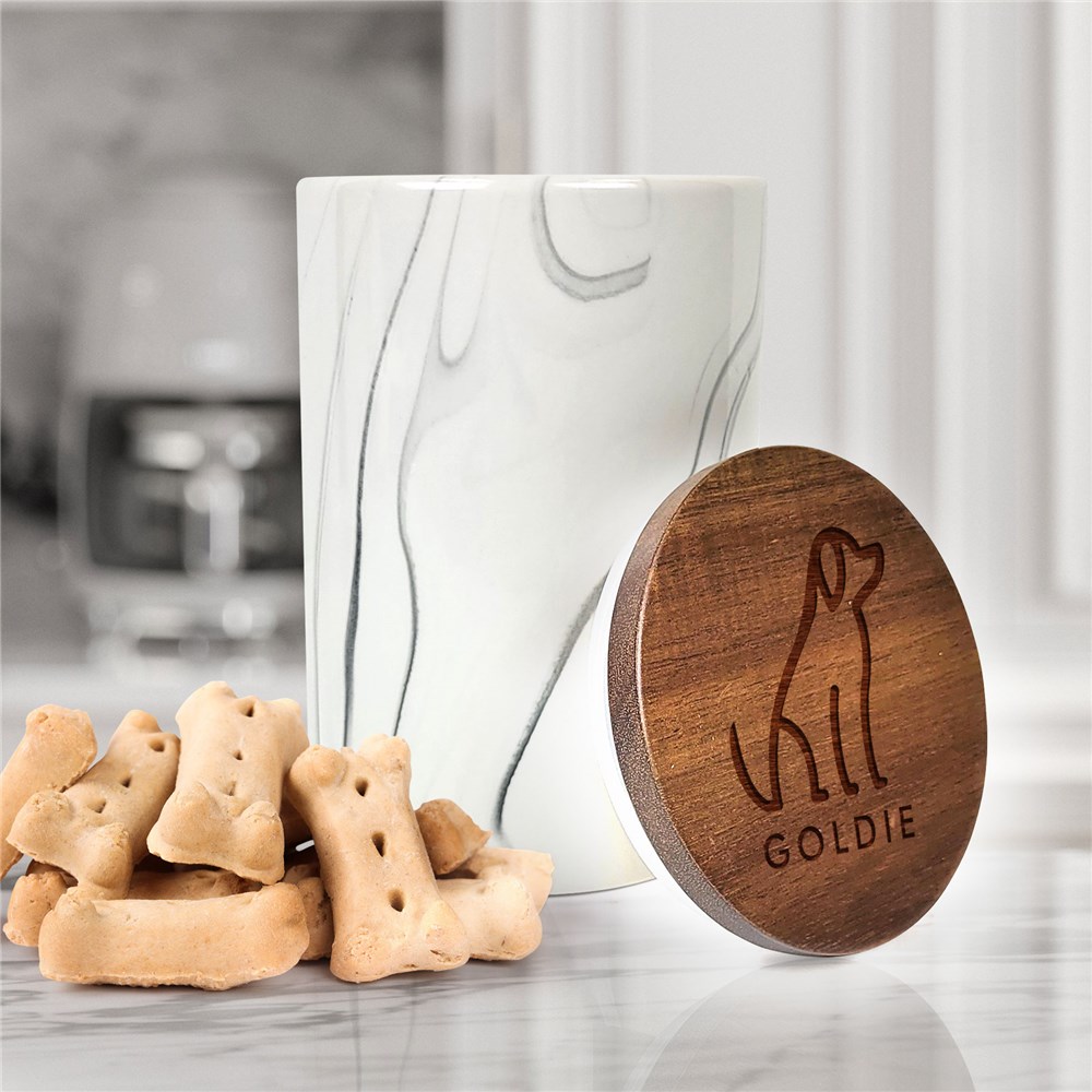 Store your dog or cat's favorite treats in our stylish Engraved Pet Icon Marble Treat Jar.