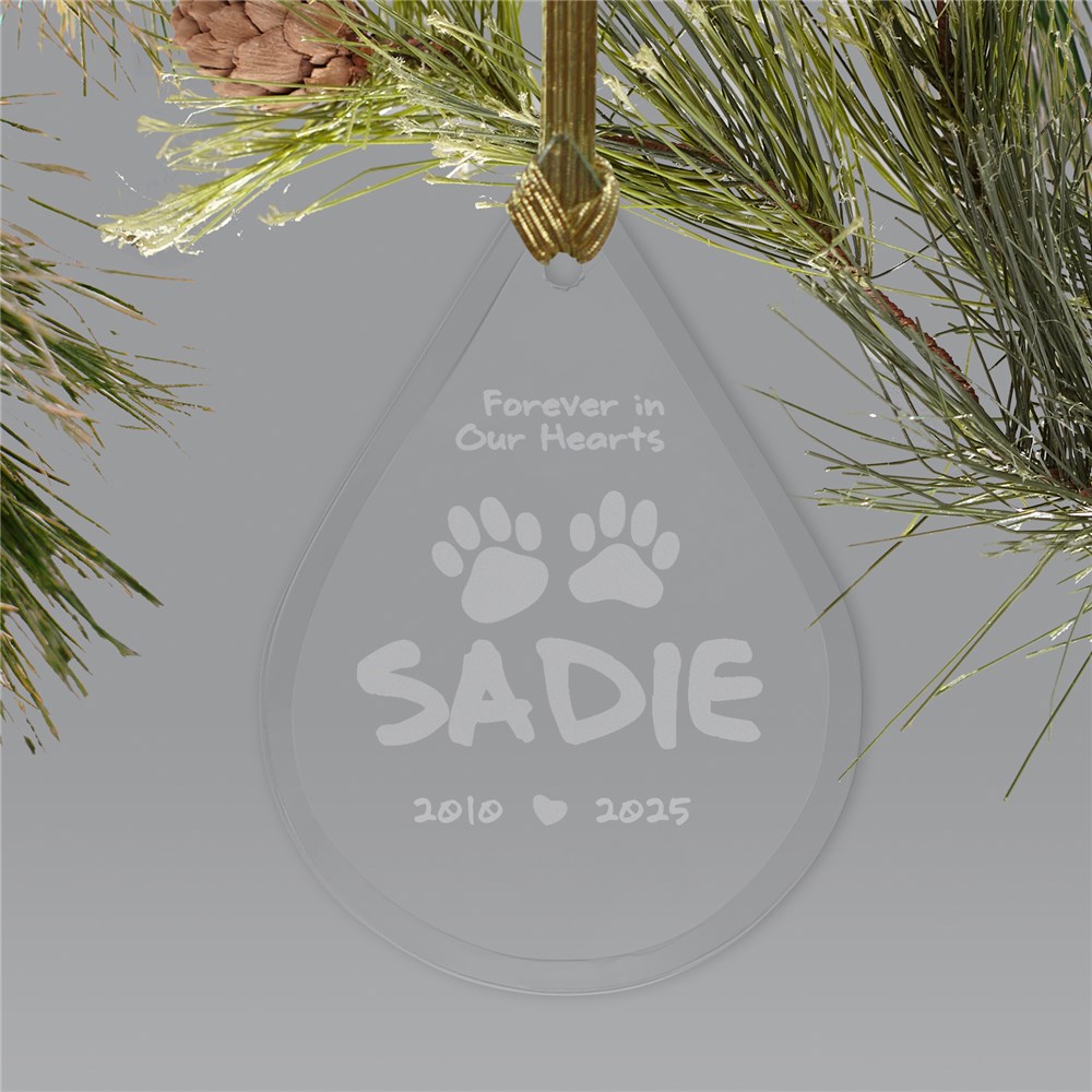 A loss of a pet is devastating, especially at the holidays. Keep their memory alive with an engraved glass tear drop pet memorial ornament hanging from your tree.