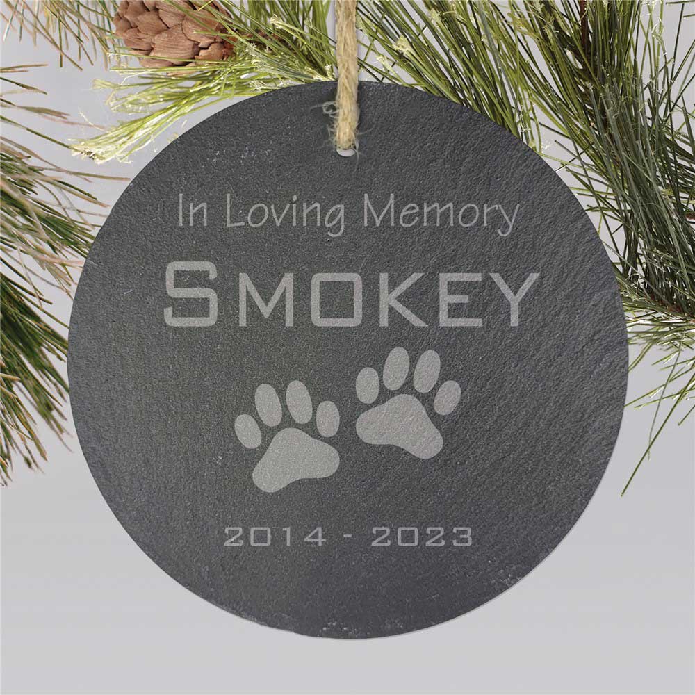 Keep the memory of your beloved pet close during the holidays with our Engraved Pet Memorial Slate Ornament.