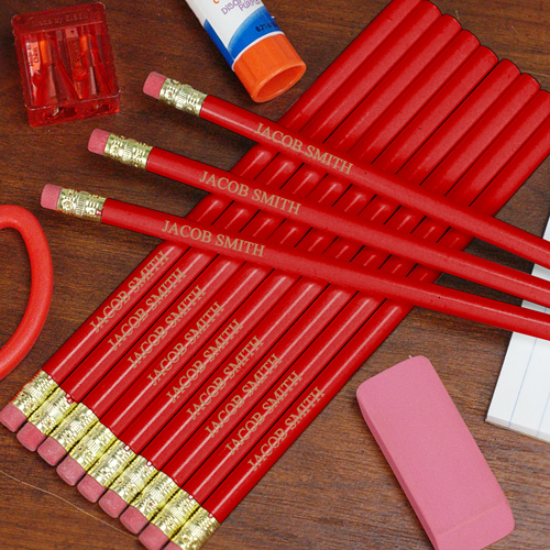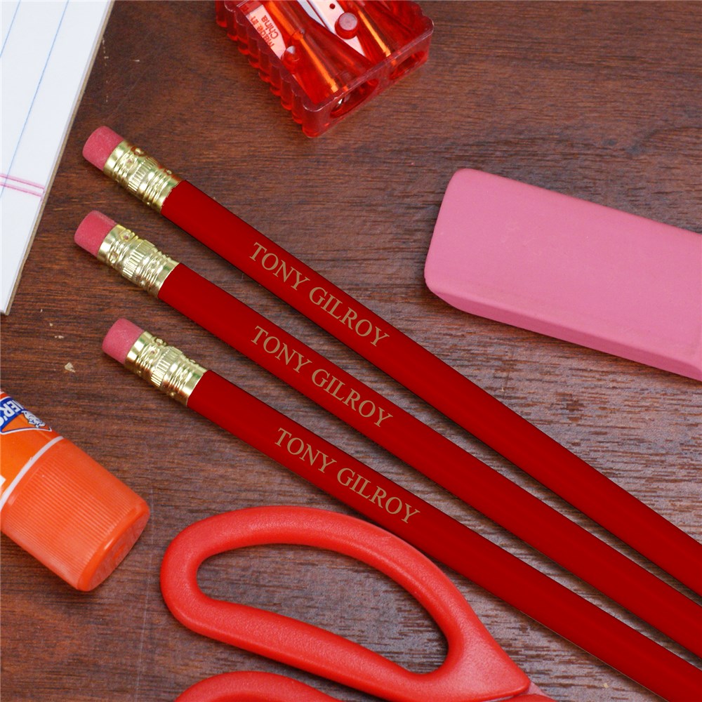 Make sure your kids are prepared for the first day of class! Our red pencil set is the perfect back to school gift. Our engraved pencil sets come with 6 pencils each. Engraving is done at no additional cost! You can personalize your pencils with any name. Each pencil is a school recommended #2 pencil that measures 7 1/2 inches unsharpened.
