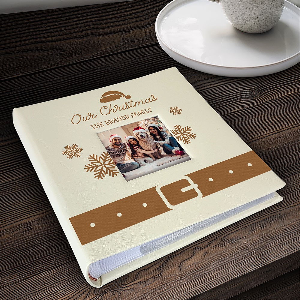 This Engraved Santa's Belt Leatherette Photo Album is thoughtfully designed to capture the essence of your family’s holiday celebrations.