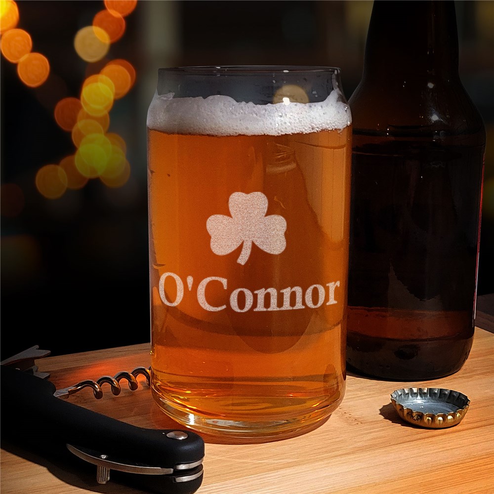 Raise a glass to celebrate your Irish heritage with our Engraved Shamrock Beer Can Glass!