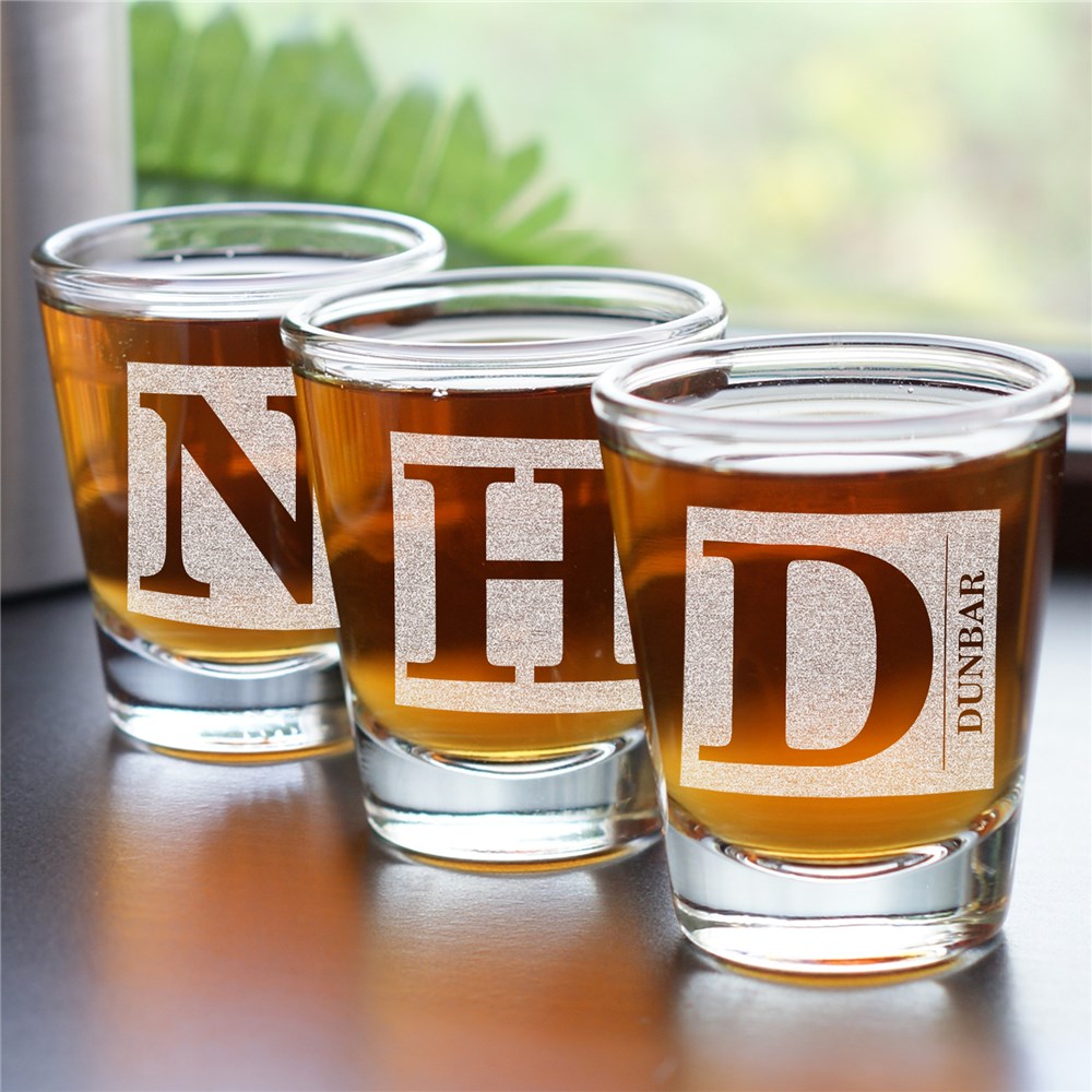 Life is full of celebrations. These personalized shot glasses not only make a great gift for him, they'll be a part of many celebrations to come. Create custom groomsmen shot glasses or a personalized gift for another special person by choosing any name and initial when you order. Each make a great birthday, Father's Day or groomsmen gift.