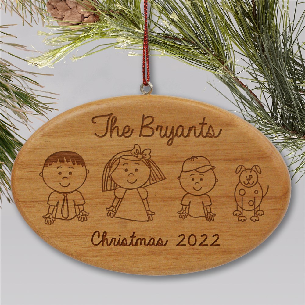 Engraved Stick Figure Wooden Ornament | Personalized Family Christmas OrnamentsEngraved Stick Figure Wooden Ornament | Personalized Family Christmas Ornaments