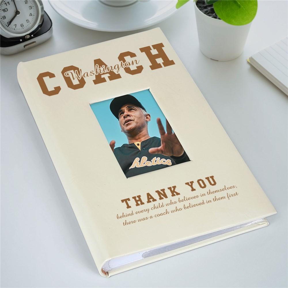 Create a photo album for the best coach ever with this Engraved Thank You Coach Large Leatherette Photo Album.