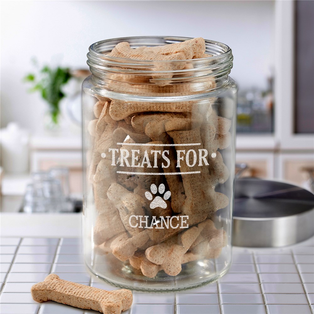Our Engraved Treats For Glass Treat Jar is great for storing treats for multiple pets.