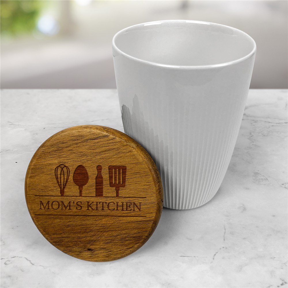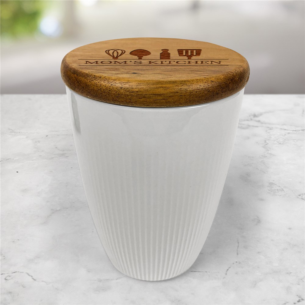 Anyone who loves to spend time cooking and baking in their kitchen will find our Engraved Utensils Canister to be a useful accessory for storage.