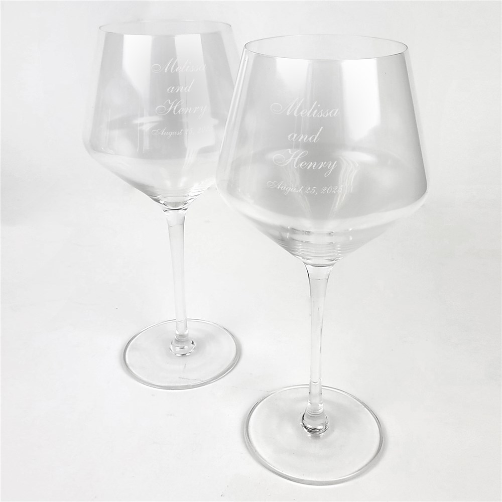 Make all of your toasts memorable with our Engraved Wedding Couple Red Wine Estate Glass Set. We will engrave these elegant glasses with any two names and date.
