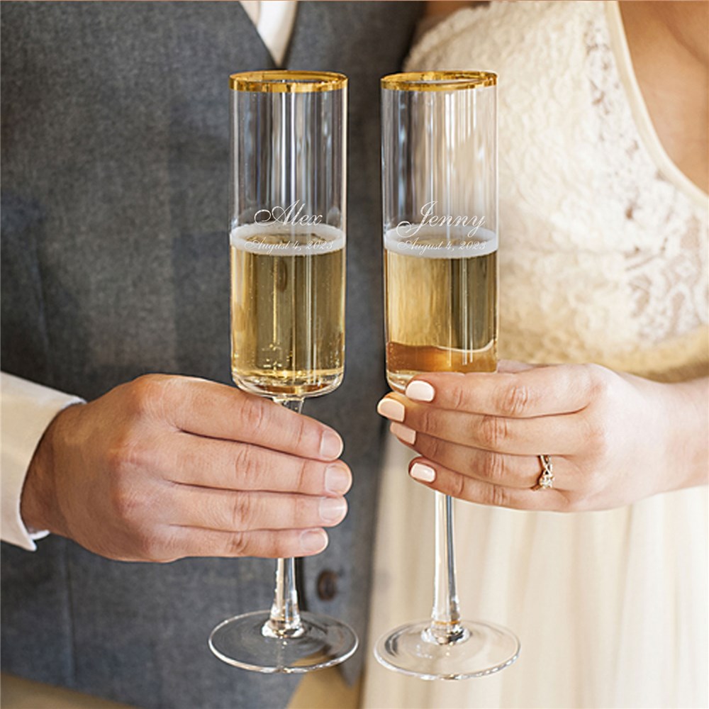 Any wedding celebration wouldn't be complete without our Engraved Wedding Toasting Gold Rim Champagne Flutes!