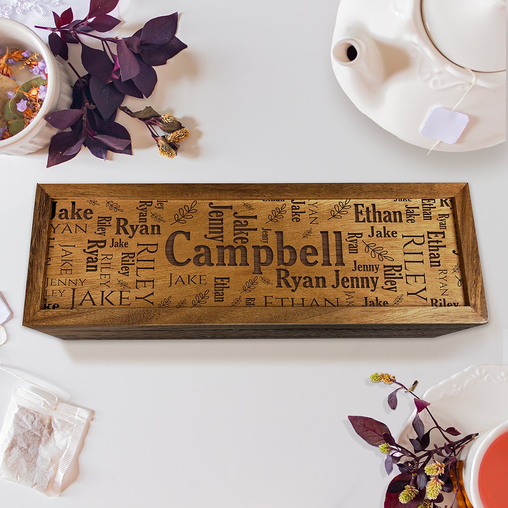 We will engrave this tea box with your customized word art, using any names, words and/or symbols you choose.