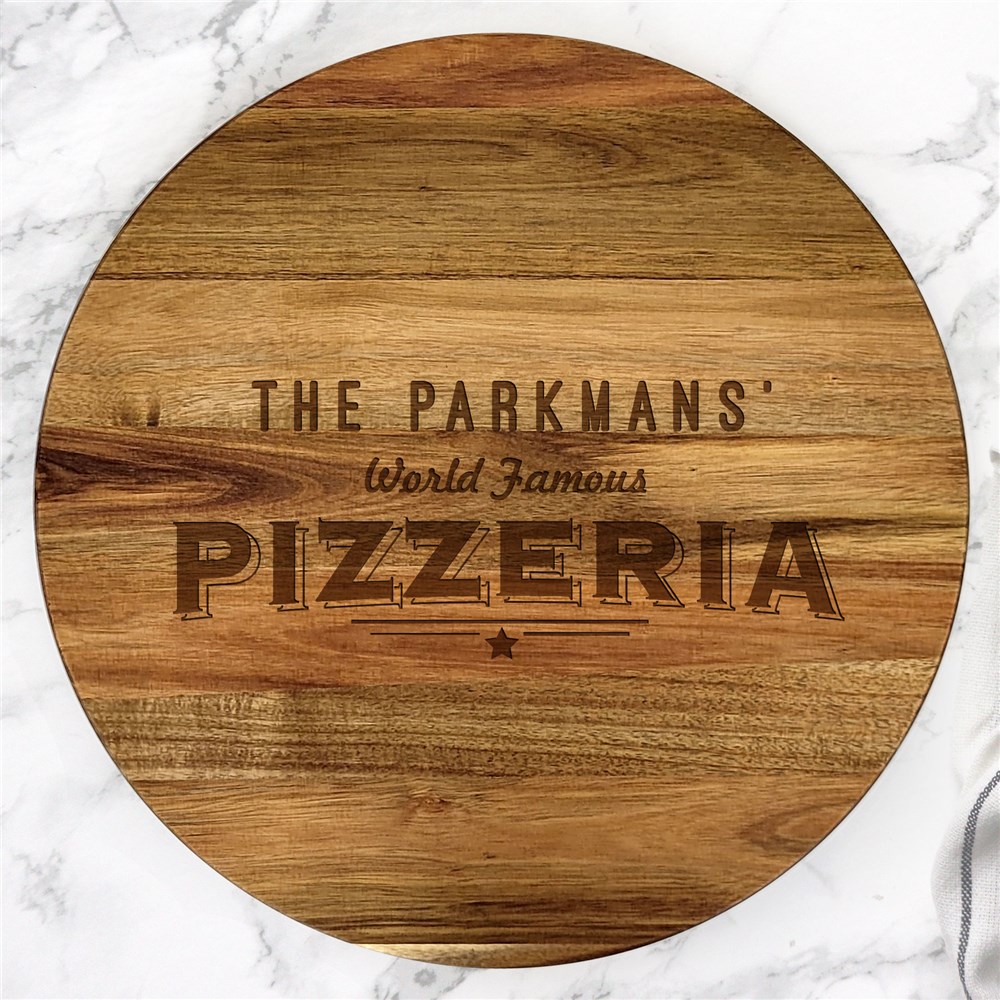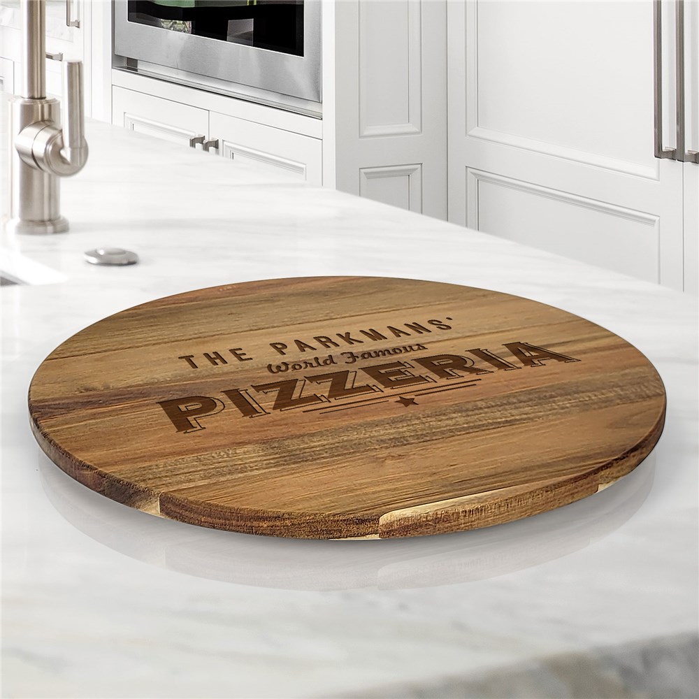 Serve delicious homemade pizza our Engraved World Famous Pizzeria Lazy Susan.