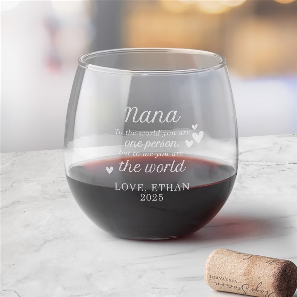 She will love to sip her favorite red wine out of our Engraved You Are The World Stemless Red Wine Glass.