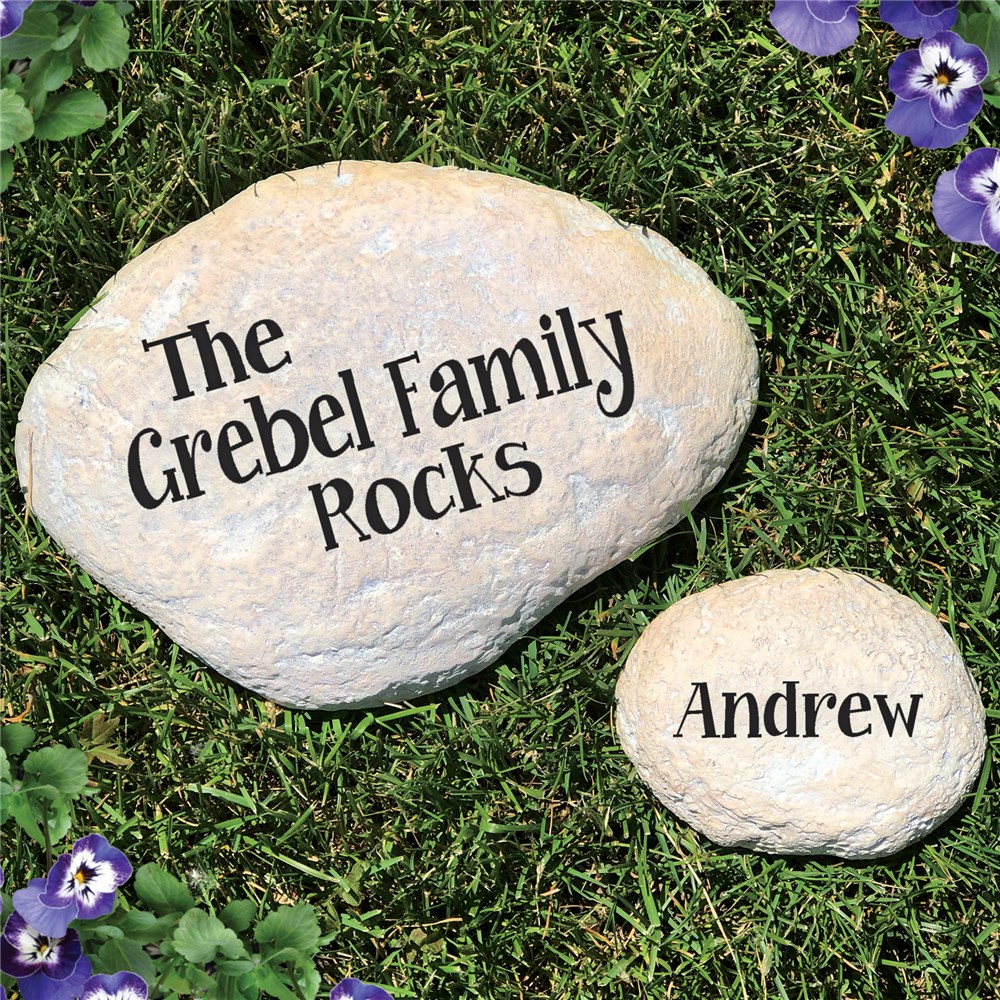 What better way to show how much your family rocks then to display it on these fun and realistic Engraved Family Stones. FREE Engraving is always included! We will engrave the garden stone with any family name on the large stone and any name on the smaller stone.