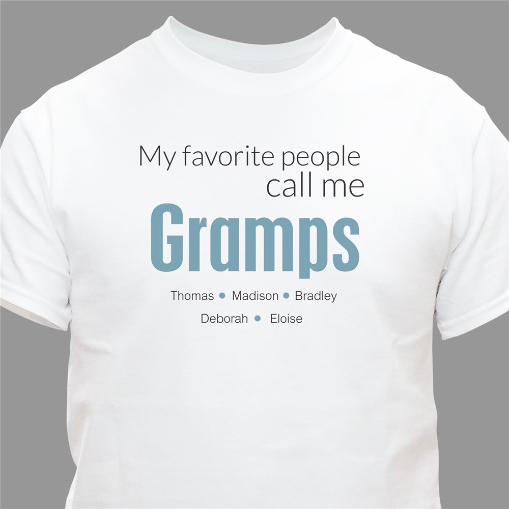Your Dad or Grandpa will be so thrilled to wear this Favorite People Personalized T-shirt when spending the day with his family. Our Dad shirts may be personalized with any Title and up to 30 Names of his Grandchildren or Children. Give Dad Shirts like this T-shirt as a sentimental Birthday or Father's Day gift.