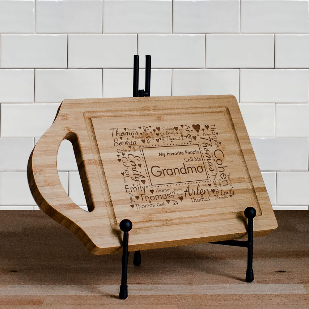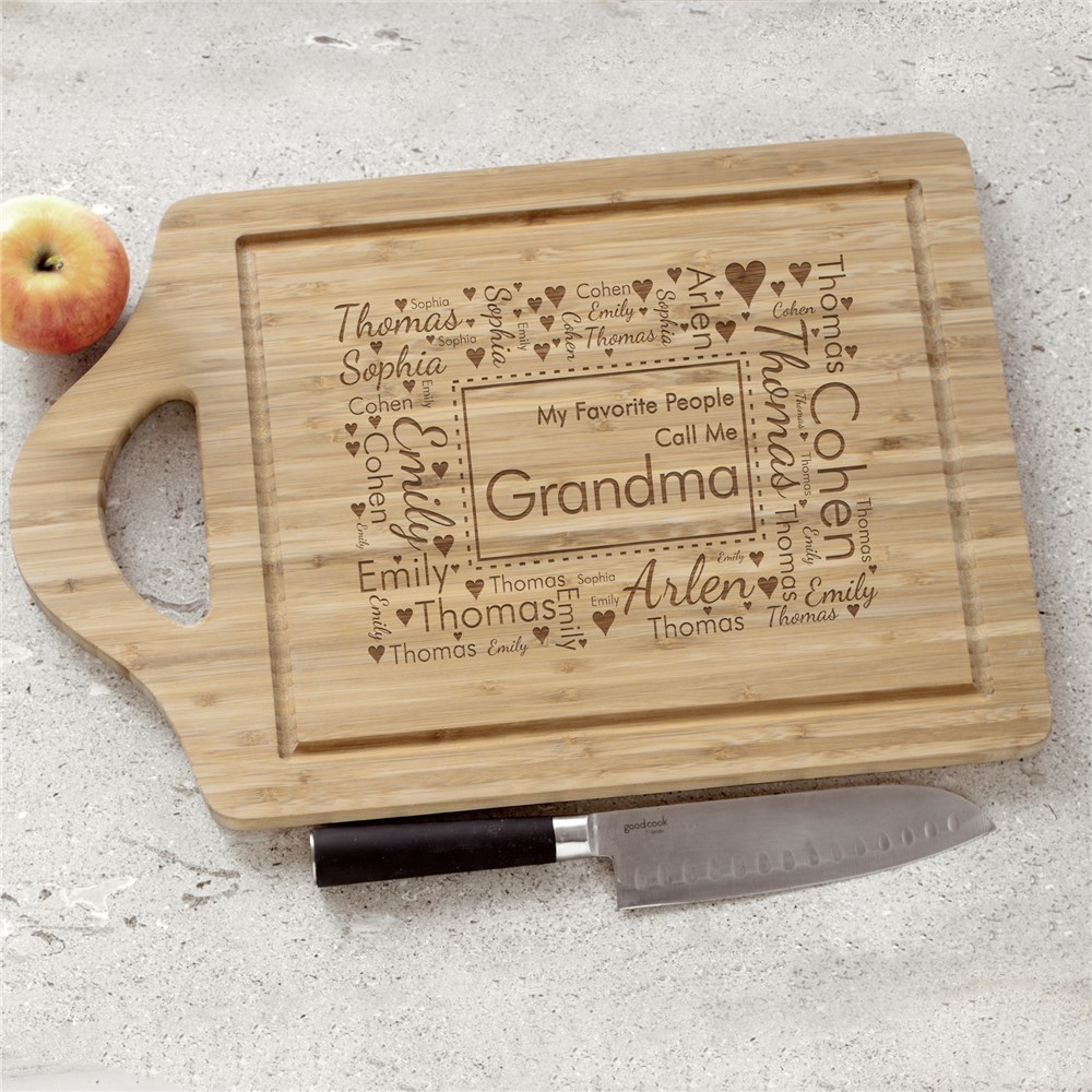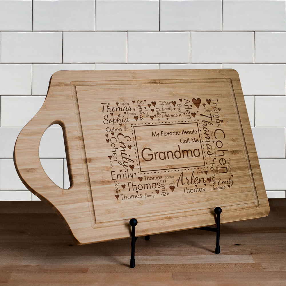 Love will fill the kitchen each time she uses this personalized favorite people word art cutting board! We'll use our unique word art tool to create a cutting board that shows off each member of her family. Personalize with any title surrounded by word art names to make for a great personalized gift for Grandma! If you would like to see another rendition of your word art design simply select the View Your Personalization button again. This will automatically create another version for review.