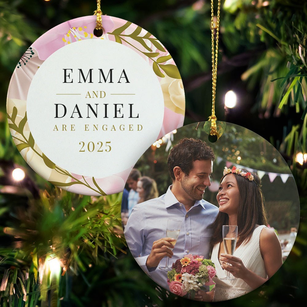 Personalized Engagement Photo Ornament | Floral Engagement OrnamentPersonalized Engagement Photo Ornament | Floral Engagement Ornament