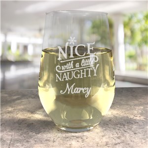 .Personalized Nice With A Little Naughty Stemless Wine Glass