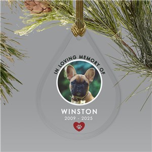 .Personalized Plaid Pet Photo Oval Glass Ornament