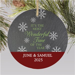 .Personalized Plaid Snowflakes Round Glass Ornament