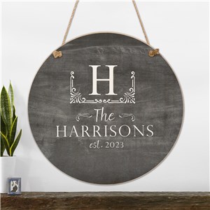 Personalized Name And Initial Chalkboard Hanging Wall Sign