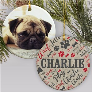 .Personalized Dog Bone Words Photo Double Sided Round Ornament