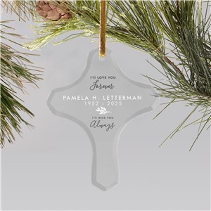 .Personalized In Loving Memory Cardinal Glass Cross Ornament