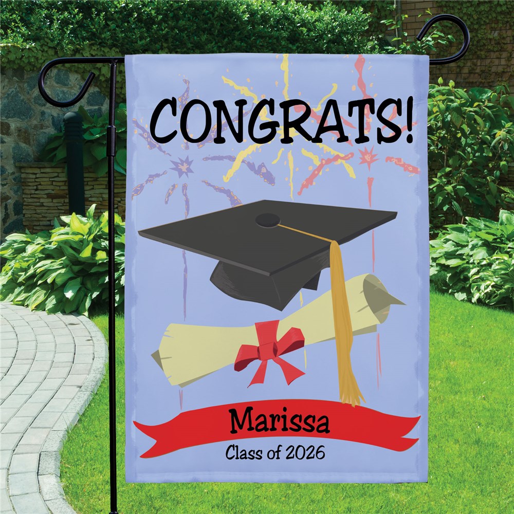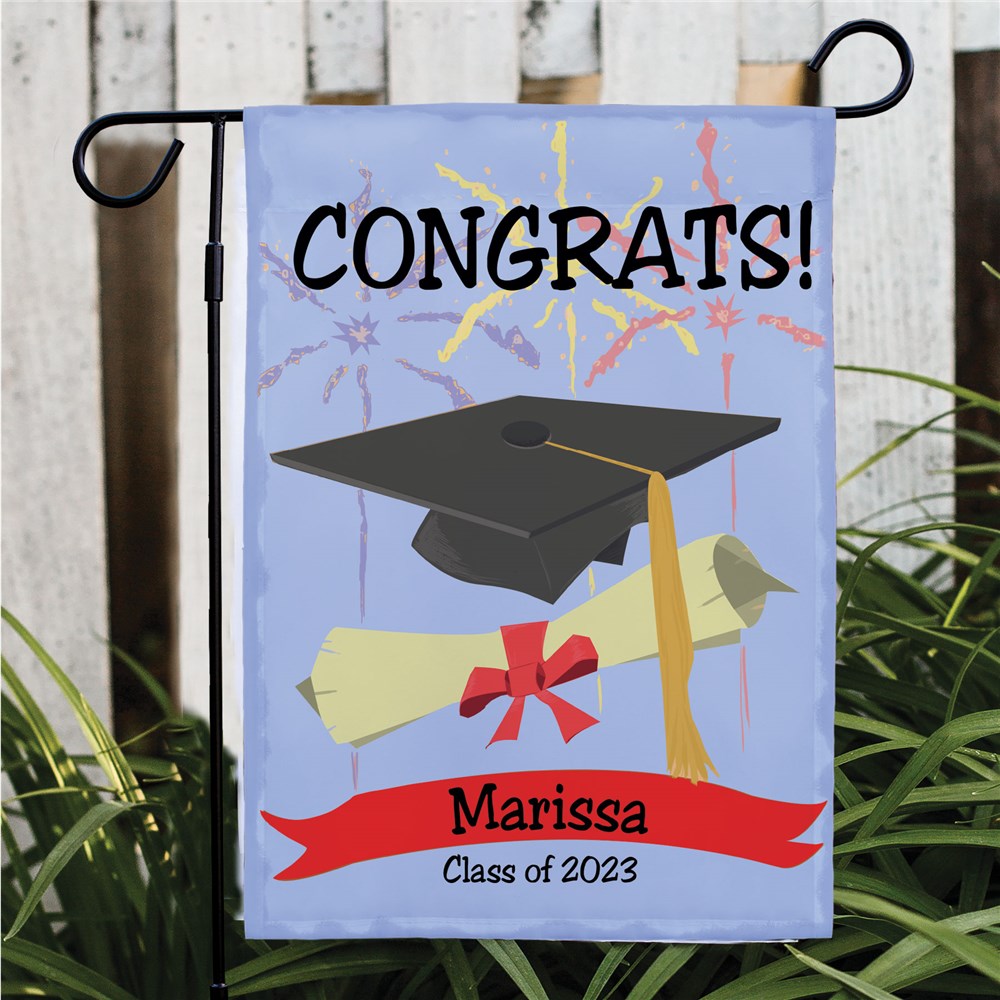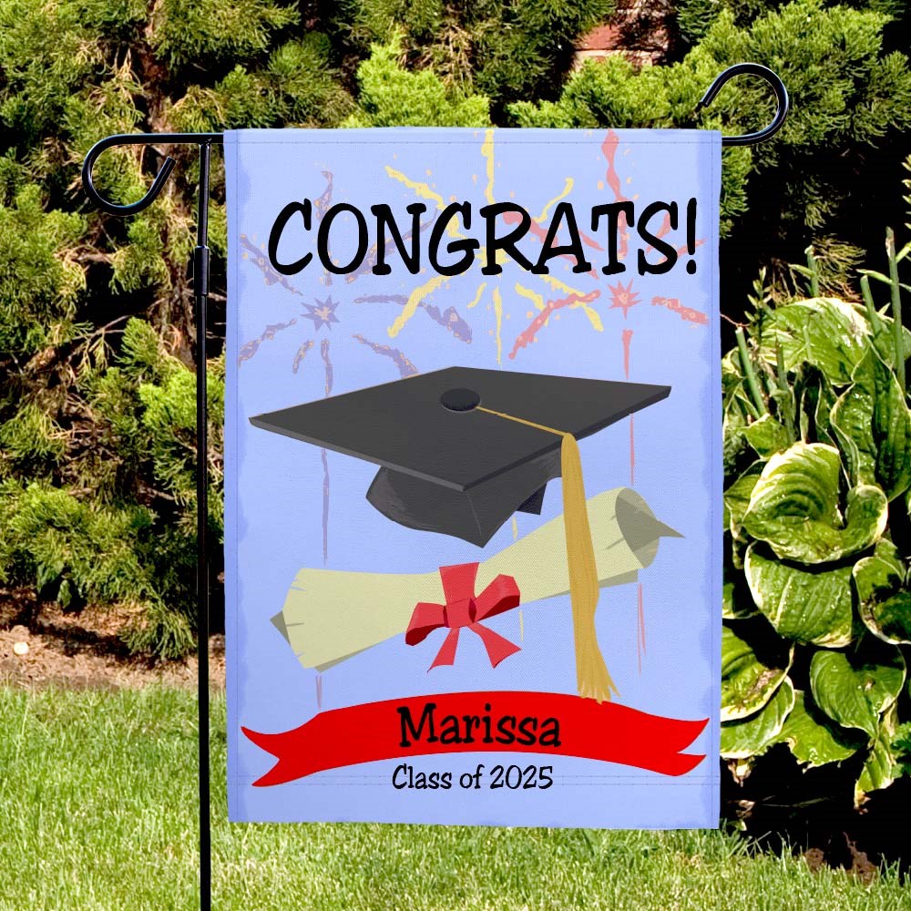 Welcome all who attends your graduation party with this great garden flag and Personalized Graduation House Flag. Everyone will know where the party is when your Personalized Flags are displayed in the front of your home.