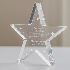 Honor your new graduate with an Engraved Graduation Star Keepsake that celebrates the work completed and instills the desire of continuing on with a new journey in life. Personalize your Graduation Keepsake with any 3 line custom message. (ie. Michelle Baker \ West Hills High School \ Class of 2019) Grad Keepsake reads: Celebrate the conclusionof this journey withthe beginning of a new one.
