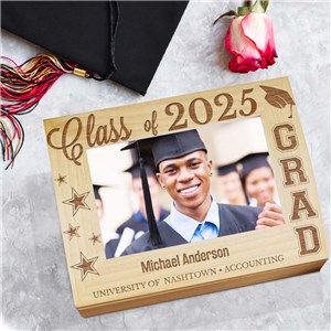 Congratulate your Graduate with our Engraved Class of Graduate Photo Keepsake.Our wooden Personalized Keepsake Box will be personalized with any year you choose and 2 custom message lines - free! Makes a great gift for any graduating friends or family!