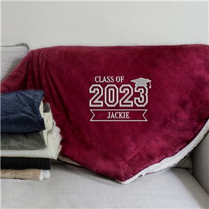 Give your new graduate a comfy blanket that commemorates their great accomplishments with our Embroidered Class of Graduation Sherpa Blanket! Our Sherpa Blanket may be embroidered with any name with your choice of thread color.This blanket makes great graduate gift for friends or family!