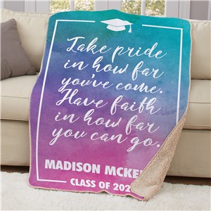 Give your graduate a blanket they can be proud of with this Personalized Graduation Sherpa Throw. We will custom create with any name, last name, school name, 3 custom message lines, year and your choice of detail color. Makes a great gift for any high school or college graduate in 2019 and beyond!