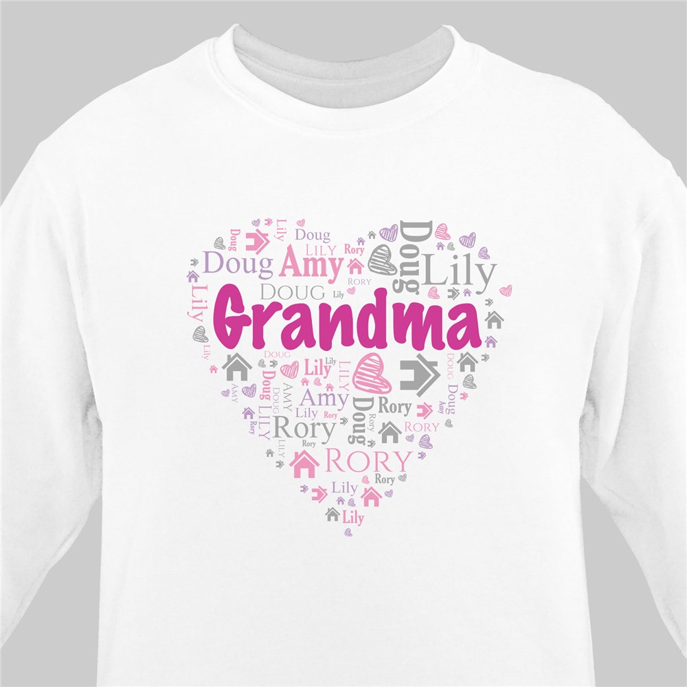 Show Grandma how much her family loves her by giving her a personalized Grandma sweatshirt this Mother's Day! Each one of her loving family members will be featured in a loving heart design created using our word art tool.