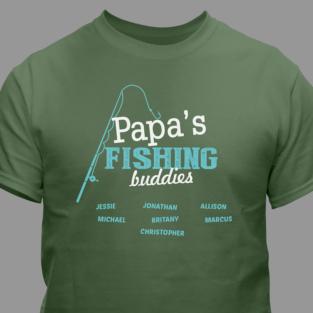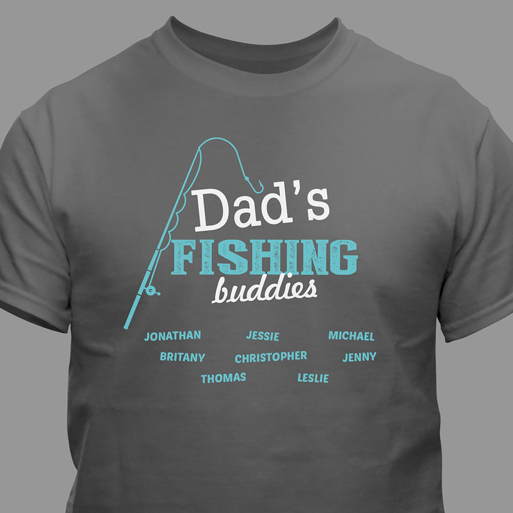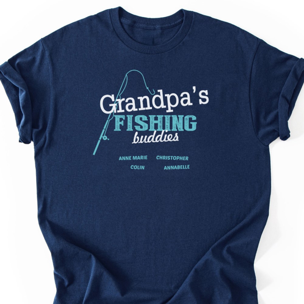 This personalized Grandpa's Fishing Buddies T-shirt is a fun and unique gift for Father's Day and can be personalized with any title and up to any 30 names of your choice. Great as Grandpa Shirts For Father's Day or even Dad, shop Father's Day gifts now!