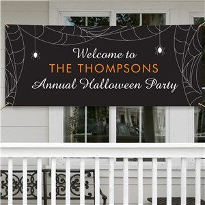 Personalized Halloween Party Banner with Spiderwebs Design