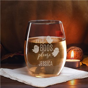 Engraved More Boos Please Tipsy Halloween Wine Glass