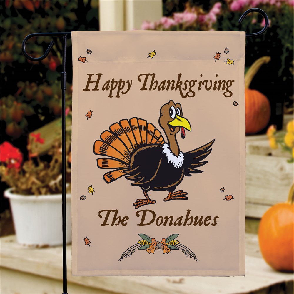Our Thanksgiving Personalized Garden Flags are a great accent to any yard or garden for greeting Thanksgiving guests. Our Custom Garden Flags are a unique way decorate the outside of your lovely home. Free personalization of any one line custom message is included.