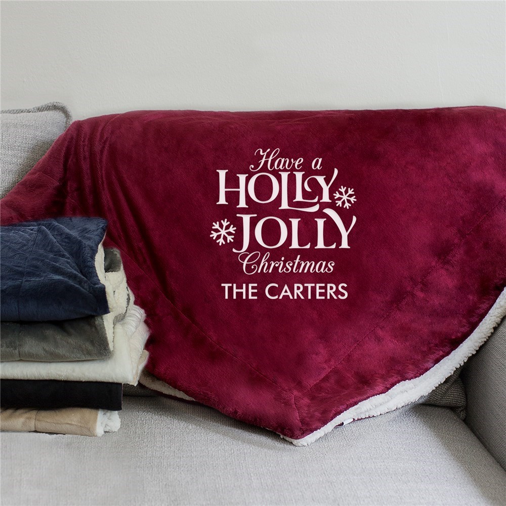 Holly Jolly Christmas Embroidered Sherpa Blanket | Personalized Sherpa BlanketsHolly Jolly Christmas Embroidered Sherpa Blanket | Personalized Sherpa BlanketsHolly Jolly Christmas Embroidered Sherpa Blanket | Personalized Sherpa Blankets