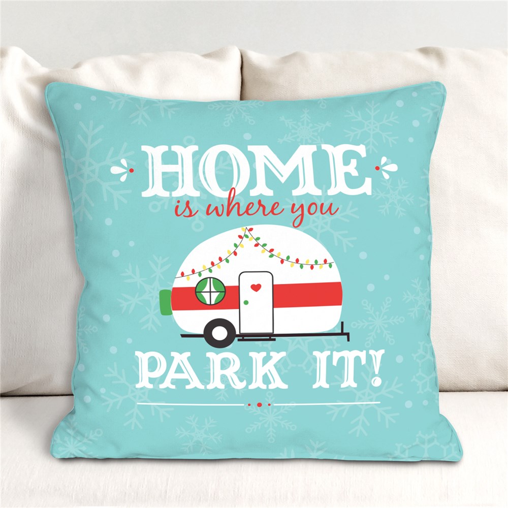 Decorate with our Home Is Where You Park It Throw Pillow this holiday season and bring home with you where ever you go. This cute Christmas Vintage Camper Decor is non-personalized so it's a great gift for yourself or anyone else.