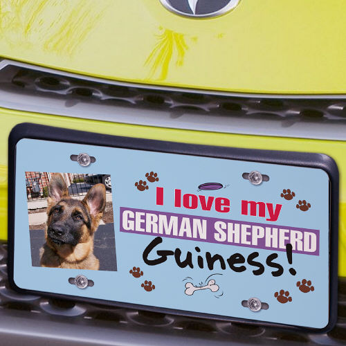 Now every dog lover can proudly show off their prized family member on an attractive Dog Photo Front License Plate. Personalize your dog photo license plate with any name, dog breed and your favorite digital photo of your pet. Upload your favorite digital photo below. Please don't send any photos in the mail, digital photos only. Recommended pixel resolution (dpi) is at least 500 x 500.