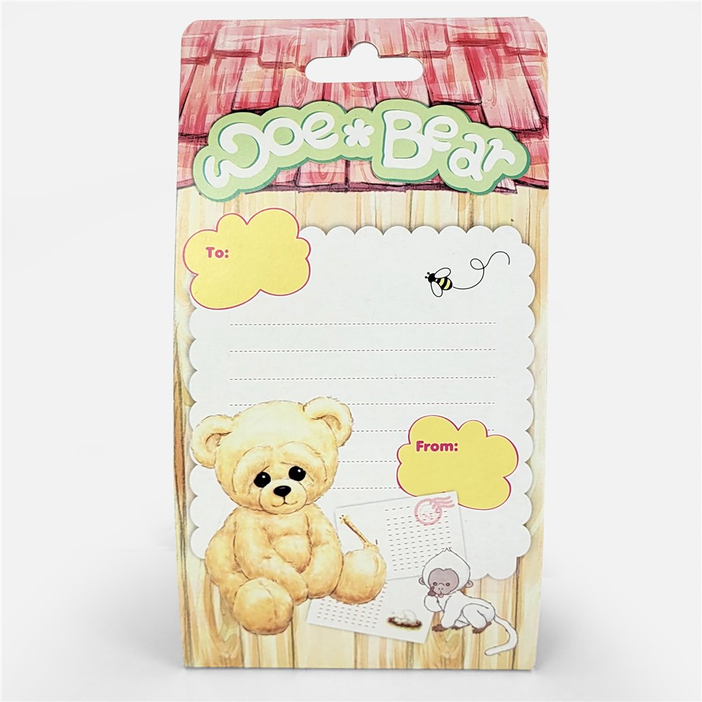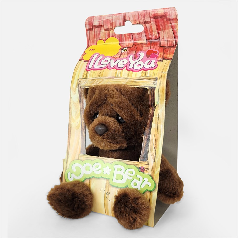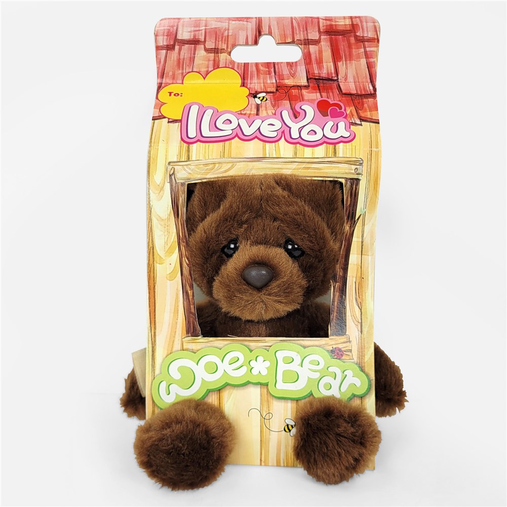 Woe Bear is 8" tall and wears a sweet, loveable expression on its face. It is adorably packaged in an open-access gift box with a "I Love You" sentiment written on the top. Woe Bear is constructed with top quality materials and lock washer eyes and nose for safety, ensuring durability and long time enjoyment.