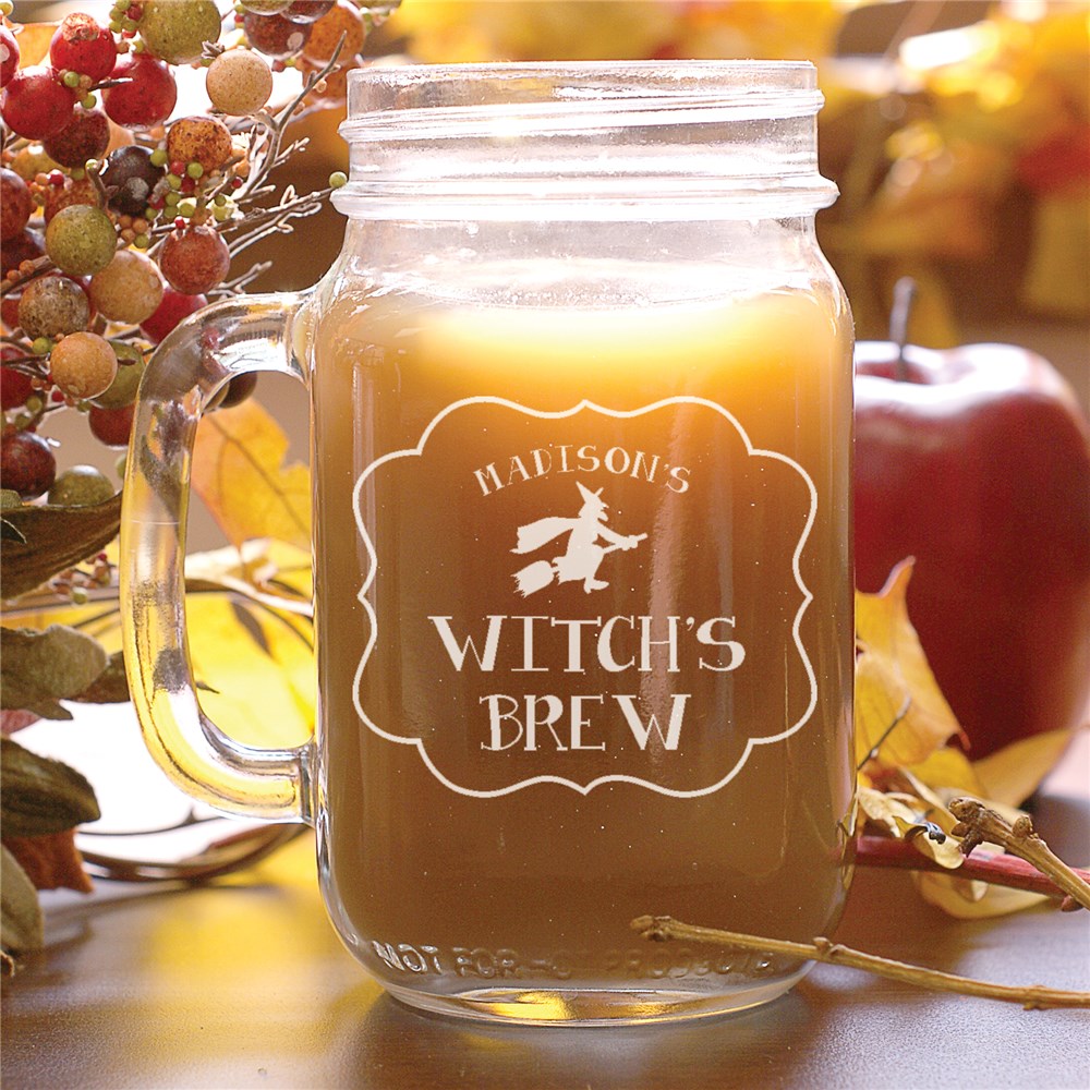 Witch's brew is a classic symbol in Halloween folklore and tails of terror. Serve some up at your Halloween party in these fun, festive mason jars. The personalized touch will really make these drinking jars stand out. It includes free personalization of any name and is perfect for your costume party with its fun design that is sure to please everyone.