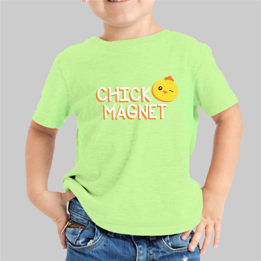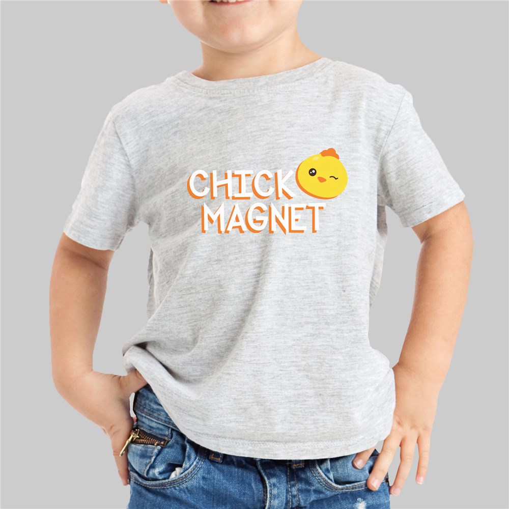 Outfit your little ladies man in this Kids Chick Magnet T-Shirt for Easter.  This adorable design comes on multiple t-shirt colors and is non-personalized. You can pass this t-shirt down through the family for everyone to enjoy after he grows out of it!