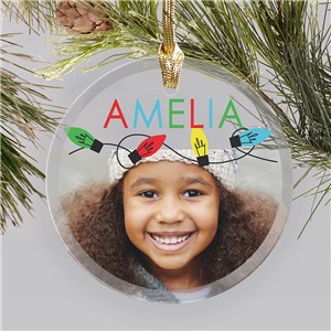 .Personalized String Light Photo Round Glass Ornament