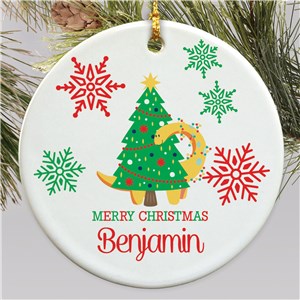 .Personalized Dino Christmas Tree Round Ornament