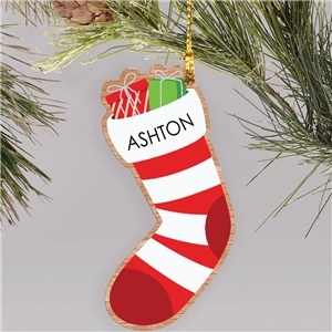 .Personalized Stuffed Stocking Wood Ornament
