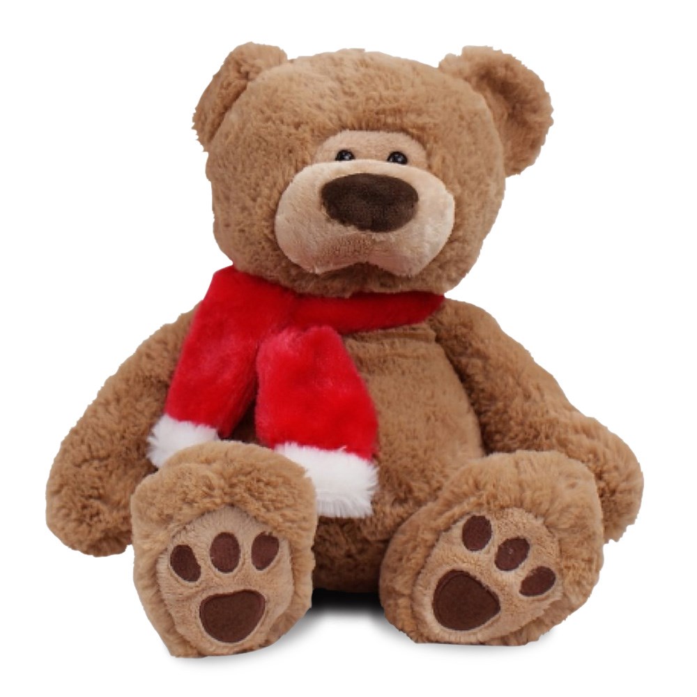 Give your child a gift of teddy bear snuggles with this adorable Tassel Teddy Bear. This festive teddy bear measures 17” and wears a delightful red scarf with silky fur. It makes a great addition to any holiday party. Surface washable.