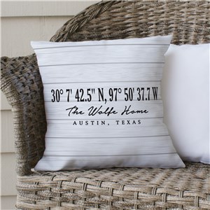 .Personalized Coordinates with White Wood Throw Pillow